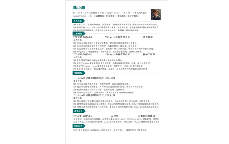 IT工程师简历模板_网络管理员简历_模板网络工程师简历简约漂亮模板
