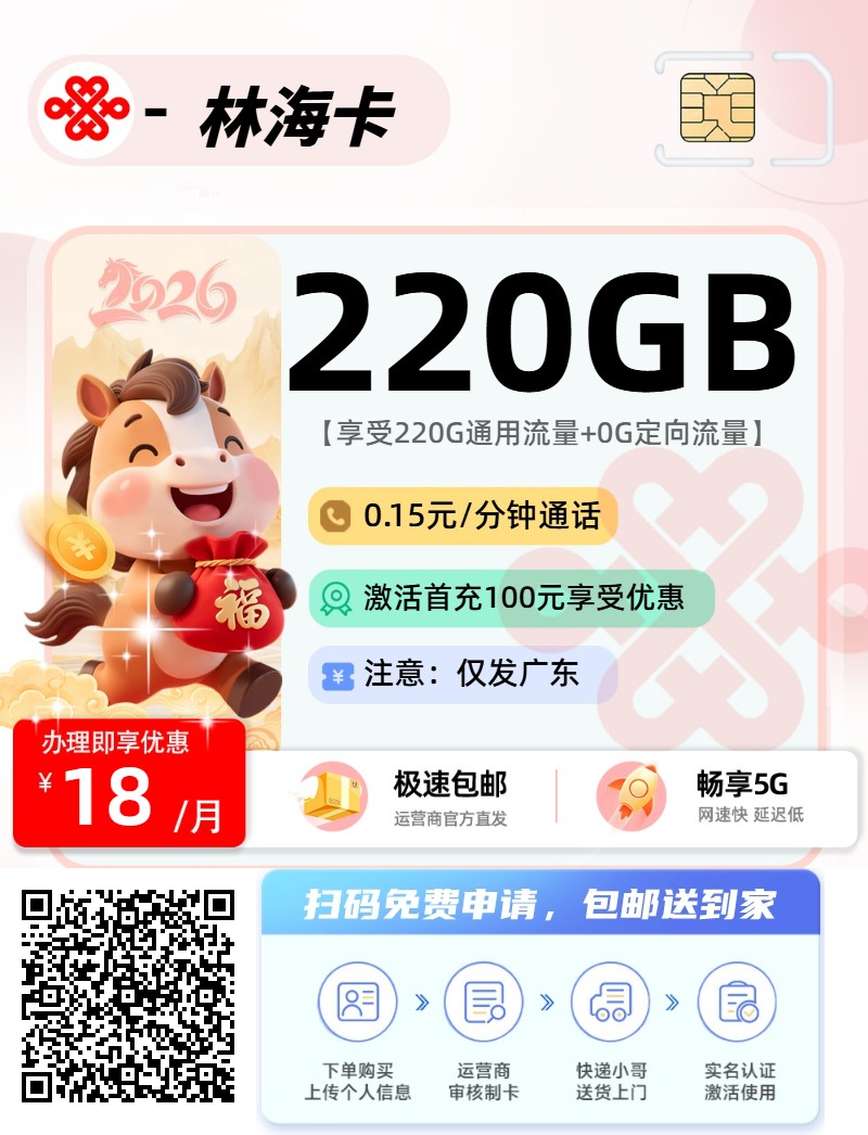 - 流量/通话:220G(18元220G通用+0.15元/分钟)。